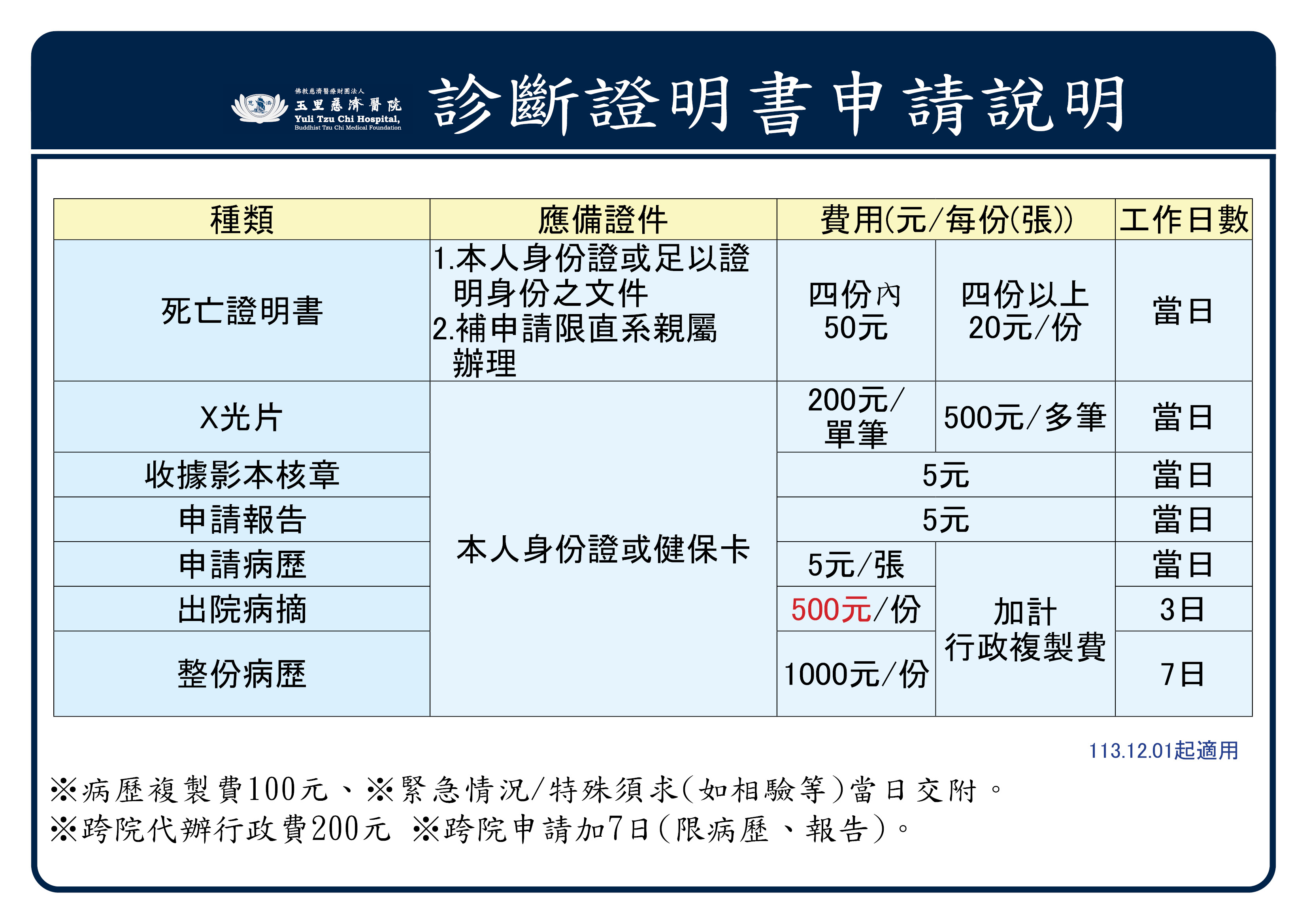 ※需加收病歷複製費100元 跨院申請需加收行政費200元 。